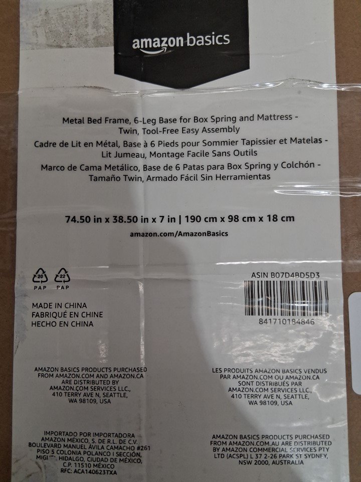 AMAZONBASICS 6-LEG SUPPORT METAL BED FRAME for box spring and mattress, TWIN 74.5" x 38.5" x 7" - BLACK