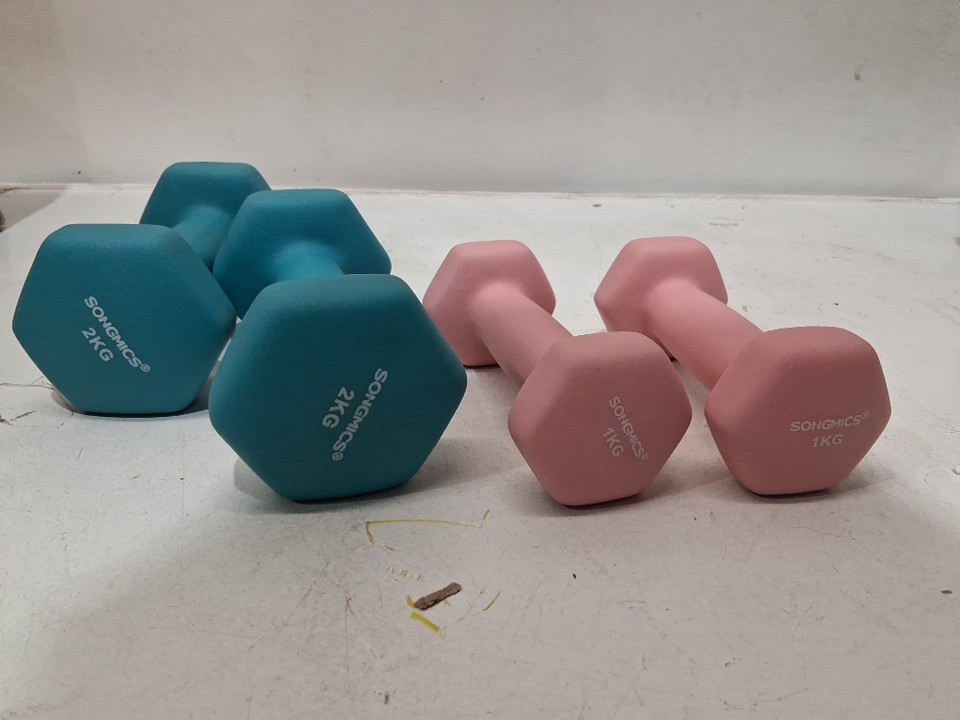 4PC SONGMIC Hex Dumbbell Set - (2) 2 KG, (2) 1 KG - Pink/blue