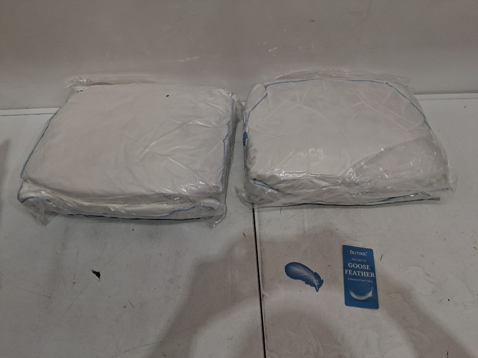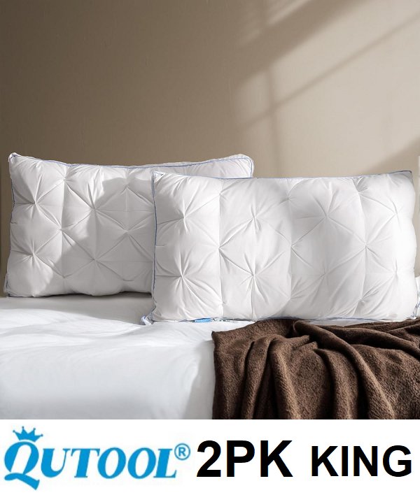 2PK QUTOOL Luxury Hotel Goose Feather Pillow - king - WHITE/BLUE