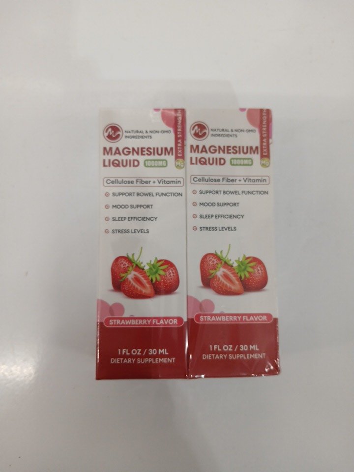 2PK M inch Magnesium Glycinate Liquid - with Cellulose Fiber, Bromelain, Vitamin B6, C, D, Zinc - Strawberry Flavor