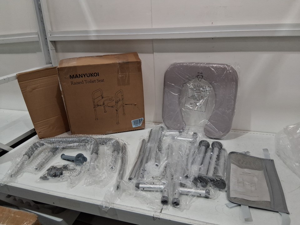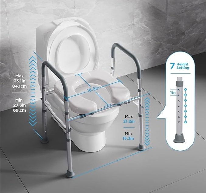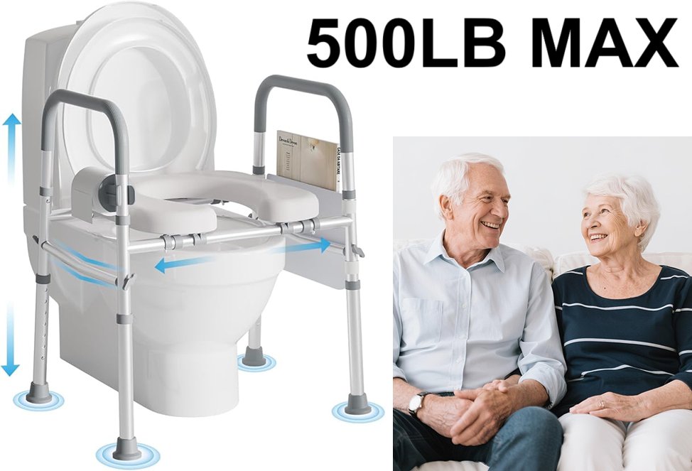 SENIORS MANYUKOI ADJUSTABLE RAISED TOILET SEAT WITH HANDLES, 500LB MAX, 27"-33" X 15"-21"