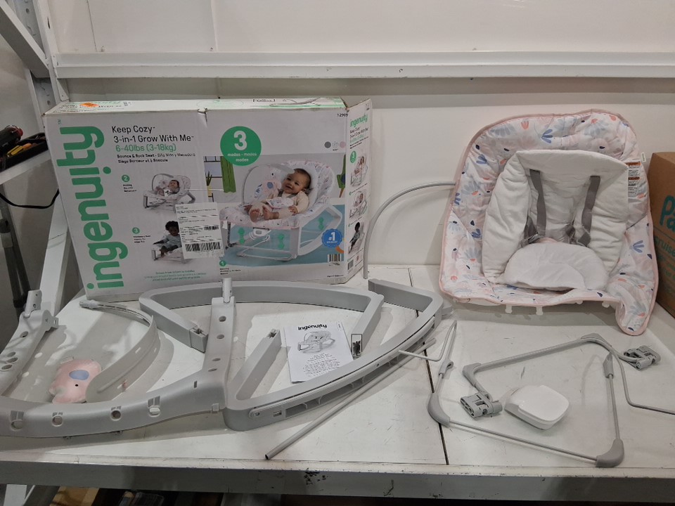Ingenuity Keep Cozy 3-in-1 Grow with Me Vibrating Baby Bouncer Seat & Rocker - 6-40LBS - pink/grey - (MODEL: 12909)