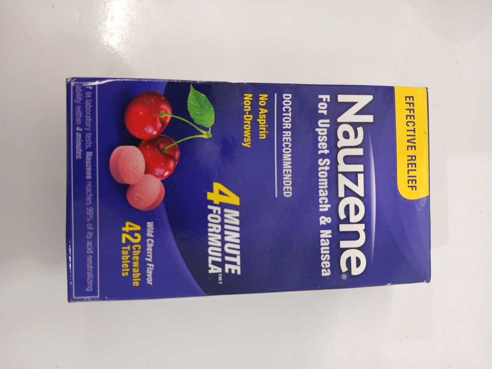 (42 TABLETS) Nauzene Non-drowsy Upset Stomach & Nausea Relief Chewable Tablets - Fast-Acting Relief in 4 Minutes - WILD CHERRY FLAVOR