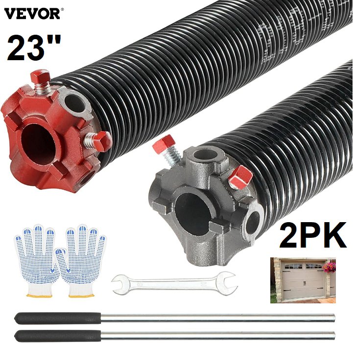 2PK VEVOR Garage Door Torsion Springs - 16000 Cycles with Non-Slip Winding Bars, Gloves and Mounting Wrench - 23" - BLACK (MODEL: GZ-23)