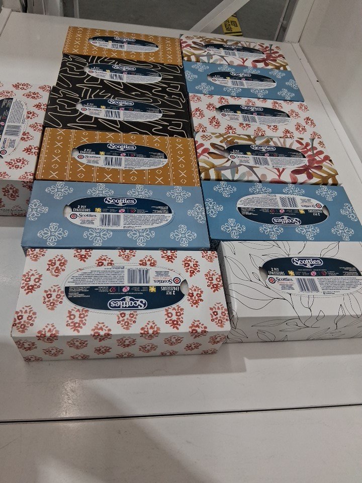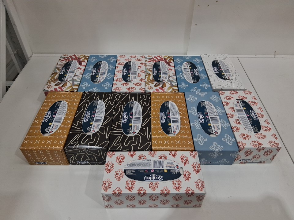 Please note that this listing only includes 13 unopened tissue boxes. The remaining boxes are not present presumably from previous light use