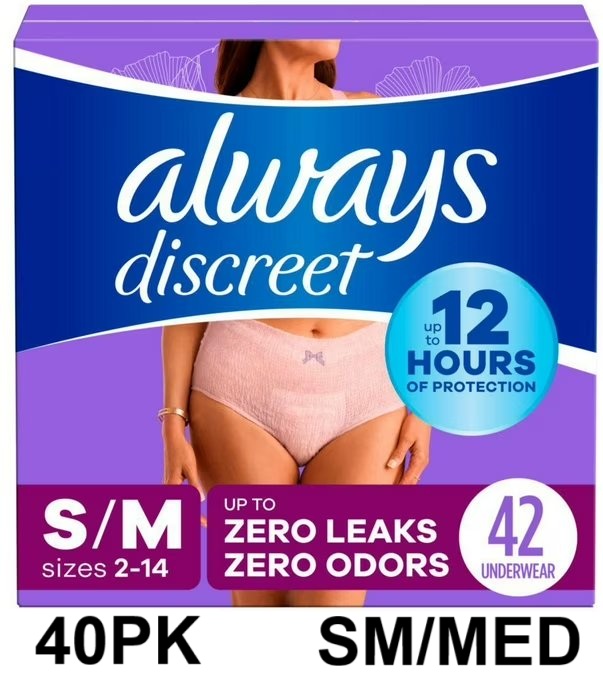 40pk womens Always Discreet Adult Incontinence Underwear -small/med