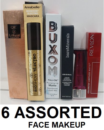 6 ASSORTED MAKEUP PRODUCTS- ASSORTED COLORS, TYPES AND BRANDS - CONCEALER/mascara/ lipstick/ eyeshadow pencil