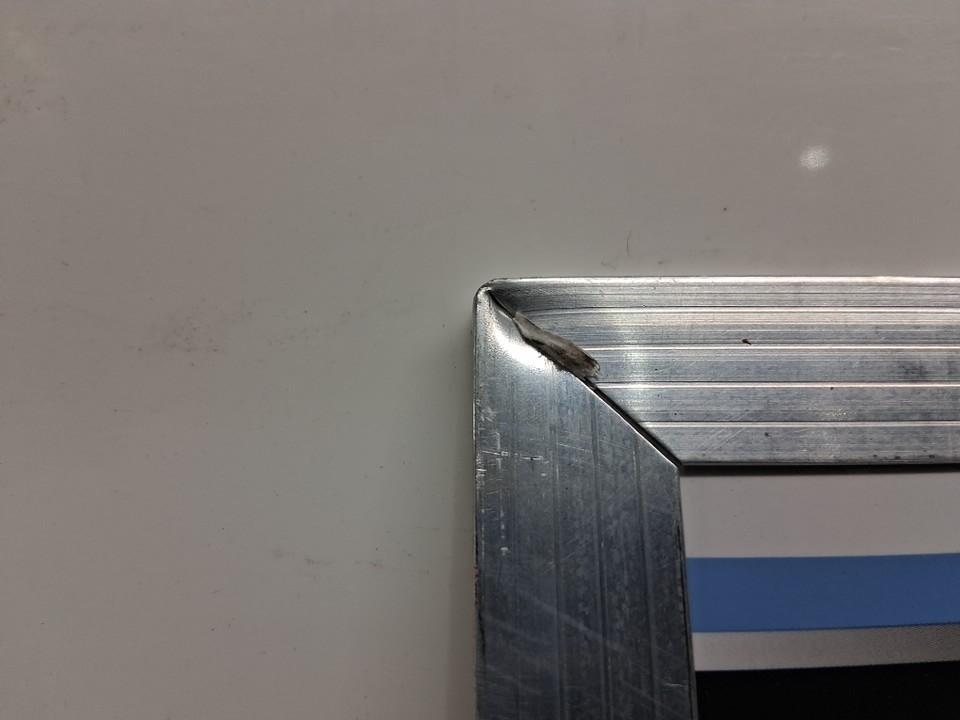 There is a small bend/dent in the top left corner from shipping- there are also some light marks/scuffs on the board from shipping (see photos)