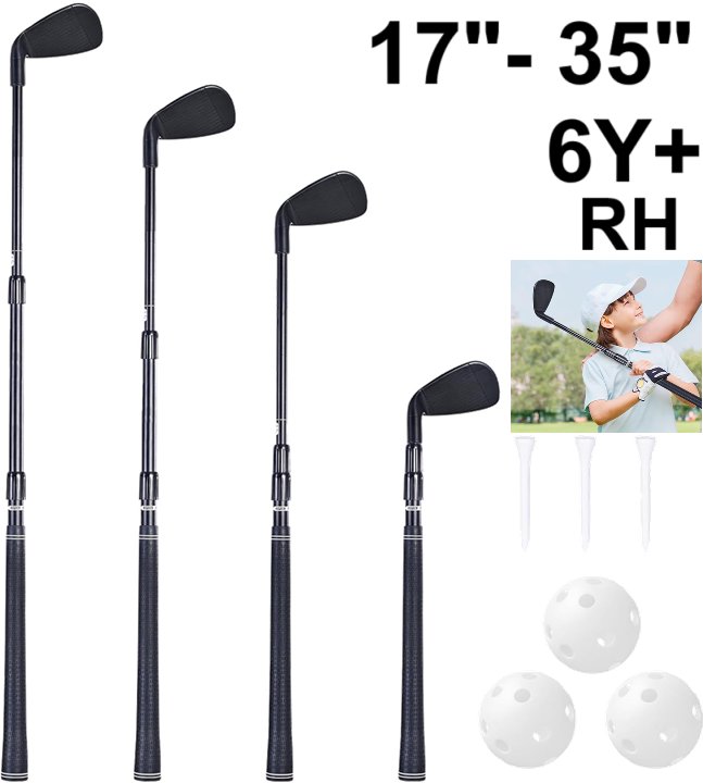 rcROKS Collapsible Plastic Golf Club GAME FOR RIGHT HAND, 17" - 35" - BLACK