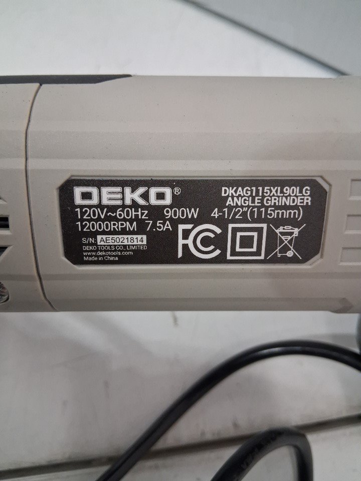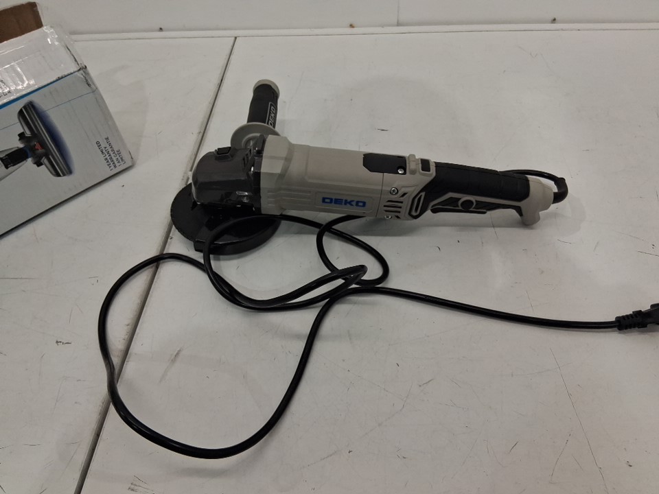 Angle grinder is missing additional discs. Disc that is currently on angle grinder has signs of use. Has been tested for power (no indicator light)