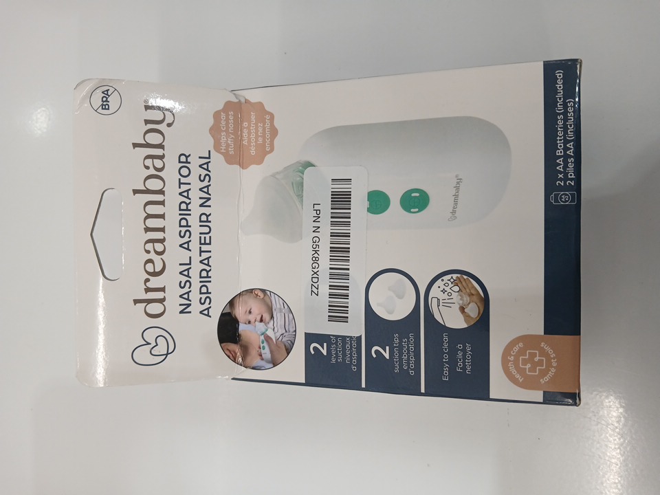 dreambaby battery powered nasal aspirator with 2 Suction Levels - white/green (model: LC377)