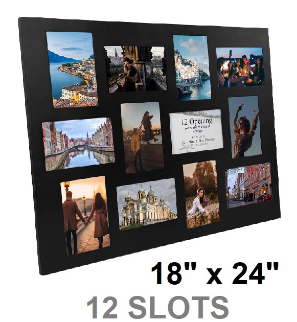 12-slot wall mounted collage picture frame - 18" x 24" - black