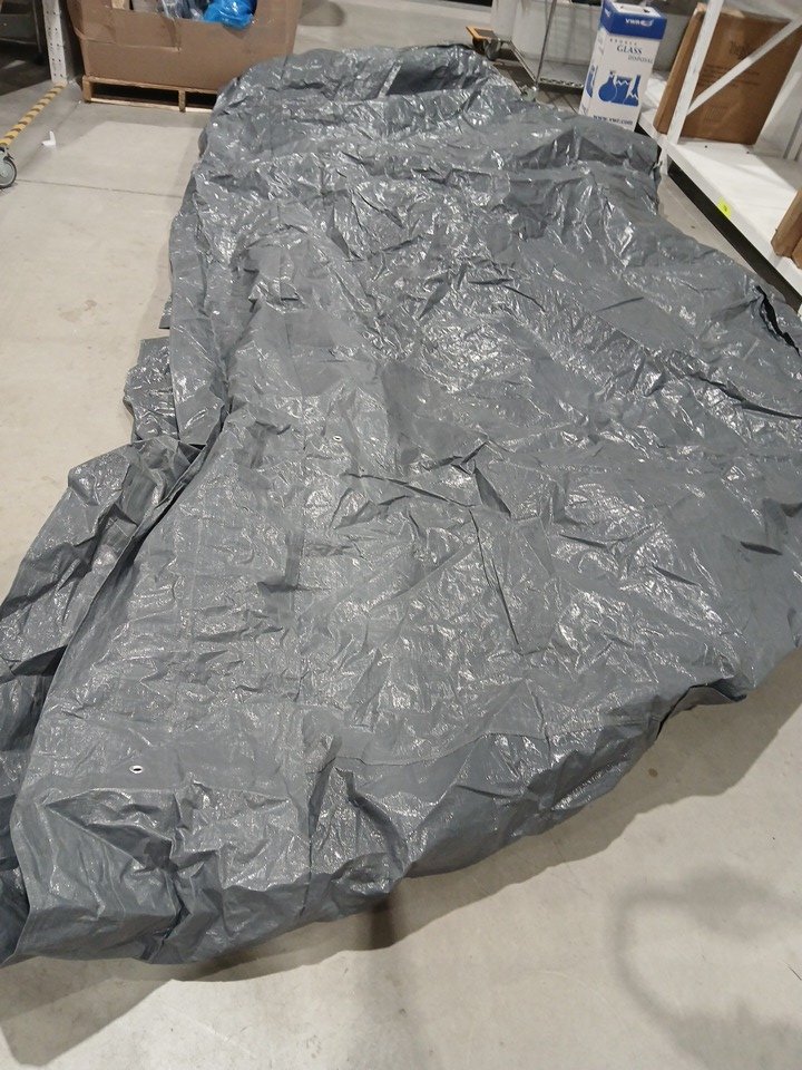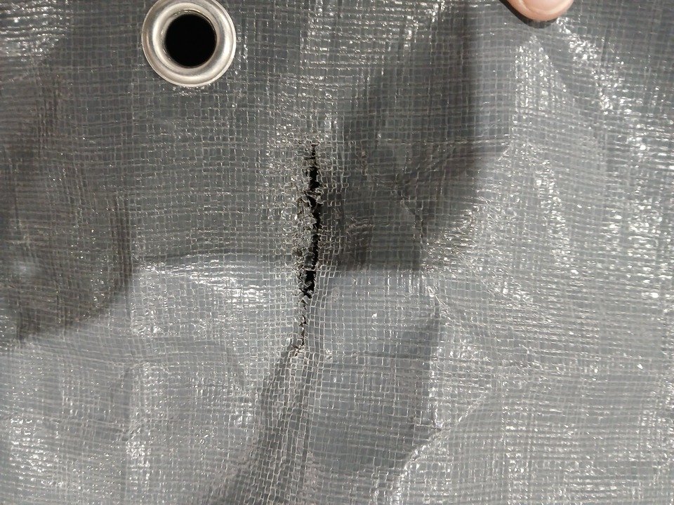 Has a tear near the bottom. due to nature of item, we are unable to get extremely accurate measurements. We have measured it to the best of our abilities and believe that this is what the product will look like once in use.