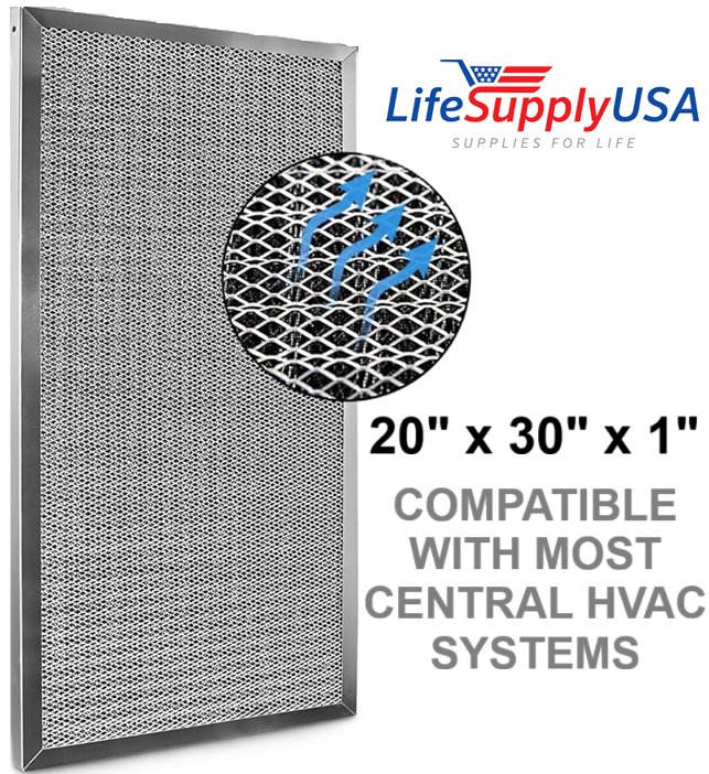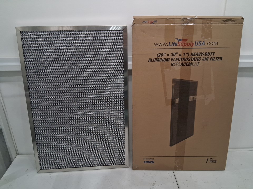 LifeSupplyUSA Washable Reusable MERV 8 Electrostatic Air Filter Replacement - Compatible with Most Central AC/Furnace/HVAC Filters - 20" x 30" x 1" - Silver (Model: ER626)