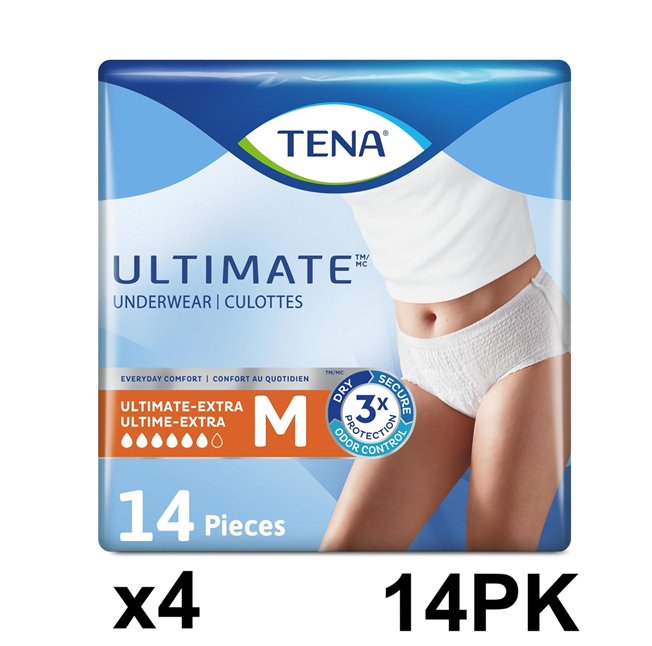 (4) 14PK tena unisex ultimate everyday wear underwear - medium - 56 total - White