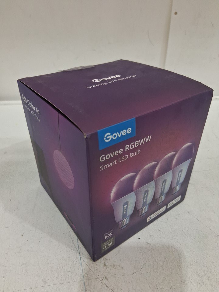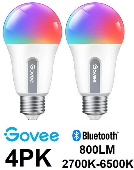 4pk Govee rgbww Smart LED Bulbs, compatible with google home, alexa, ifttt, and govee home app - 800lm, 2700k-6500k (model: h6008)