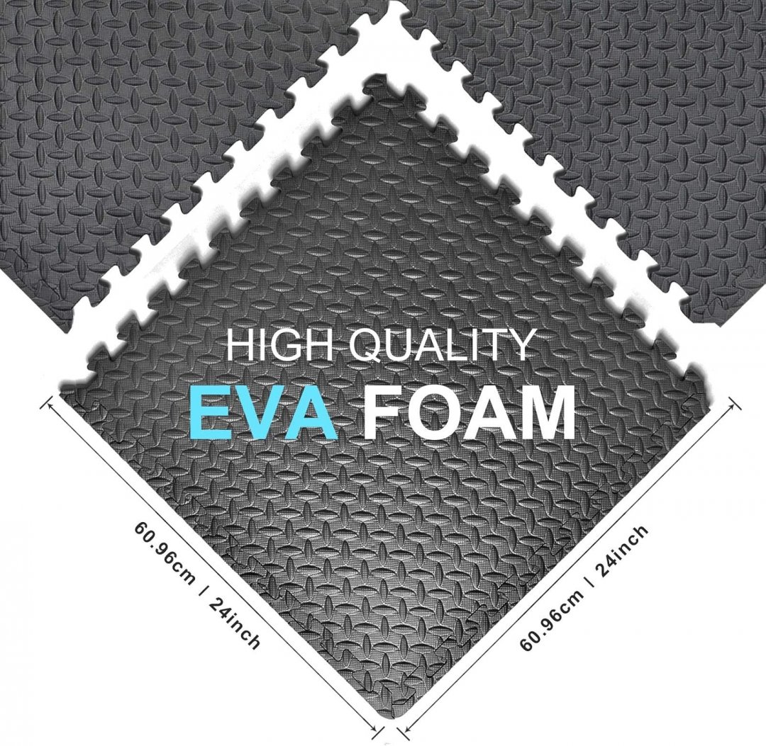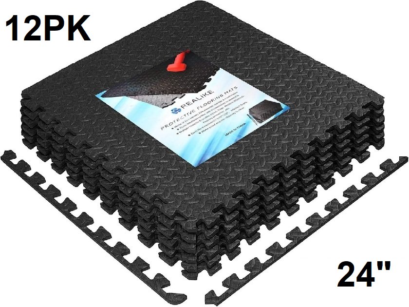 6PK REALIKE INTERLOCKING EVA FOAM EXERCISE MAT TILES - 1/2" THICK - 24" X 24" - BLACK