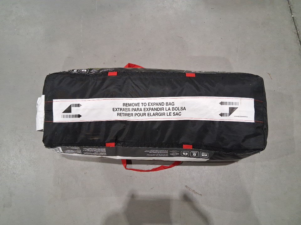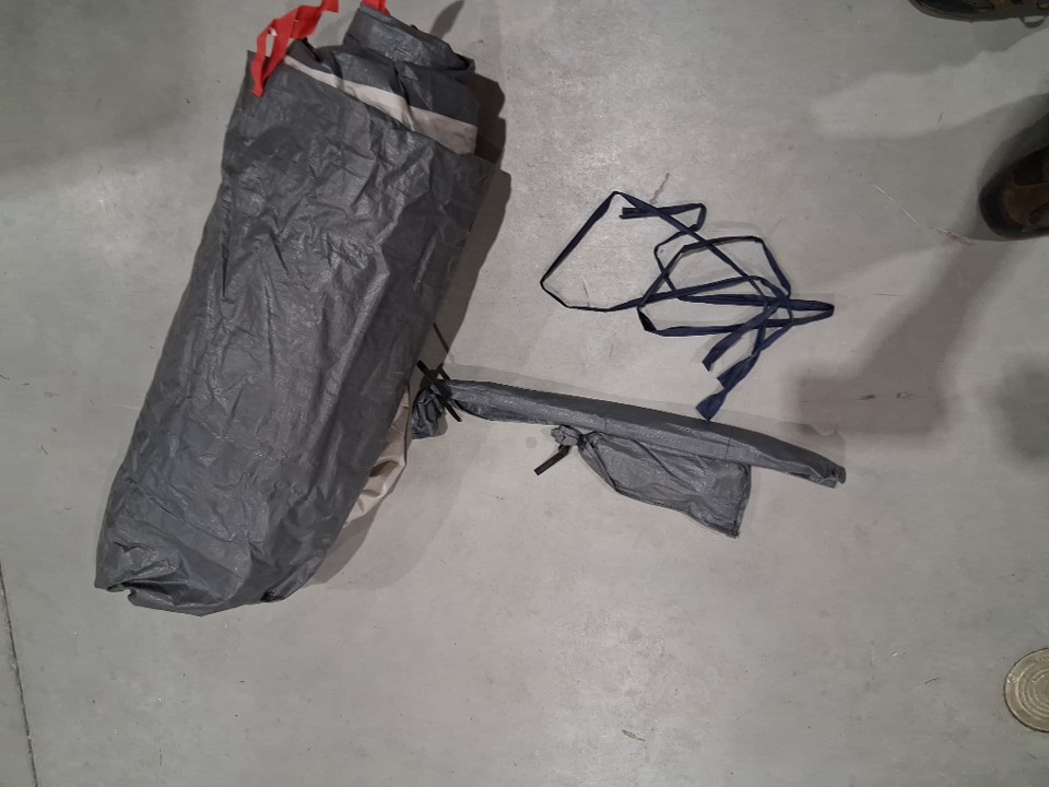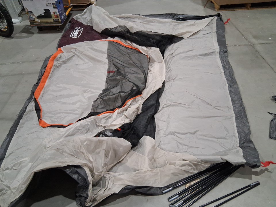Has a smoky smell and some debris inside. also some stains outside and moisture on inside of tent