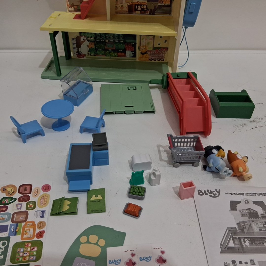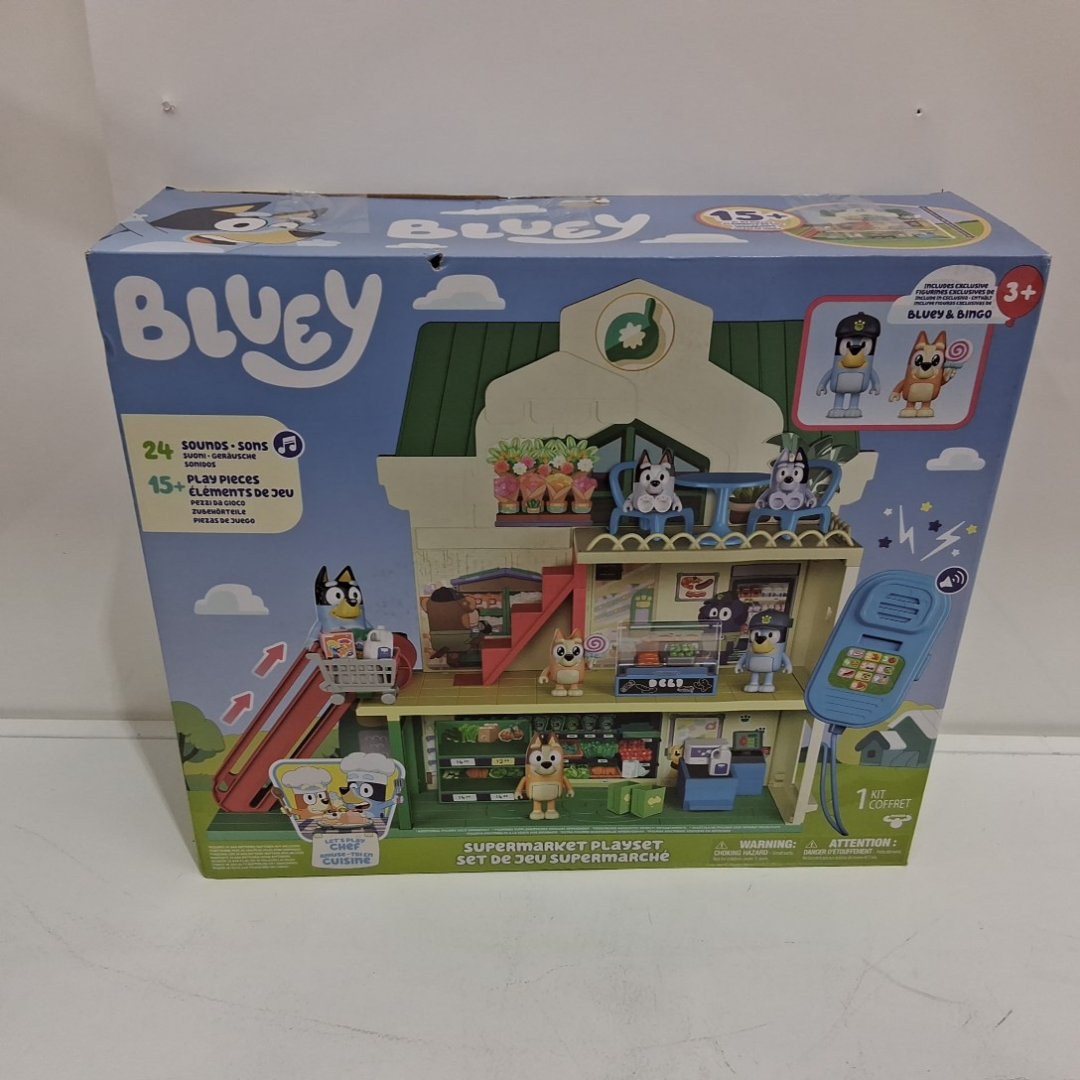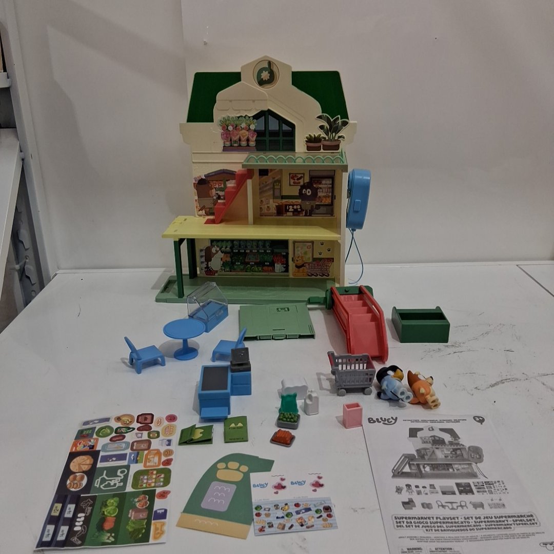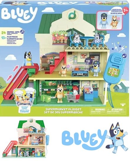 Bluey Supermarket Playset with Exclusive Bluey and Bingo Figures and 15+ play pieces (model: ‎18918)