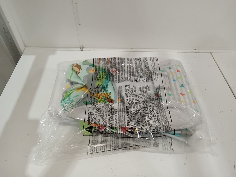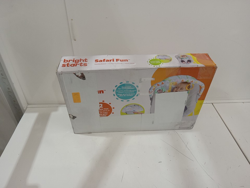 BRIGHT STARTS safari fun PORTABLE 3-POINT HARNESS VIBRATING BOUNCER WITH TOY BAR - Safari/Multicolored (MODEL: 12204)