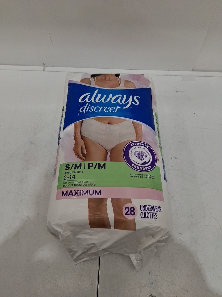 28pk women's always discreet for sensitive skin underwear - small/medium (sizes 2-14) - maximum absorbency