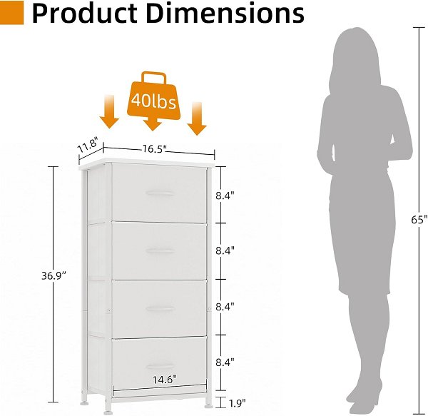 CAIYUN 4 fabric Drawer Tall Dresser - 36.9" height - white