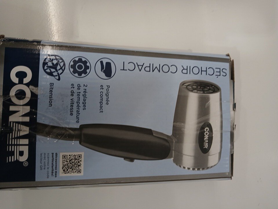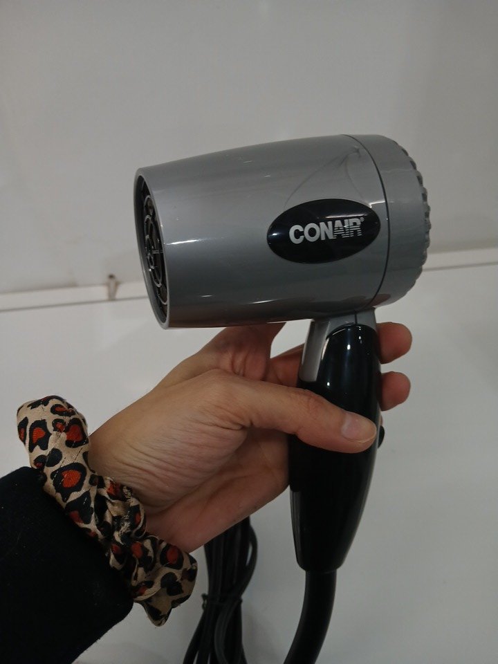 Conair compact travel hair blow dryer with folding handle - 1600W - Grey (model: 124NPC)
