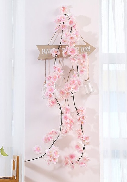 Boutique Artificial Cherry Blossom Garland for Wedding, Party Decor - 5.9ft - light pink