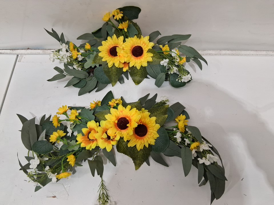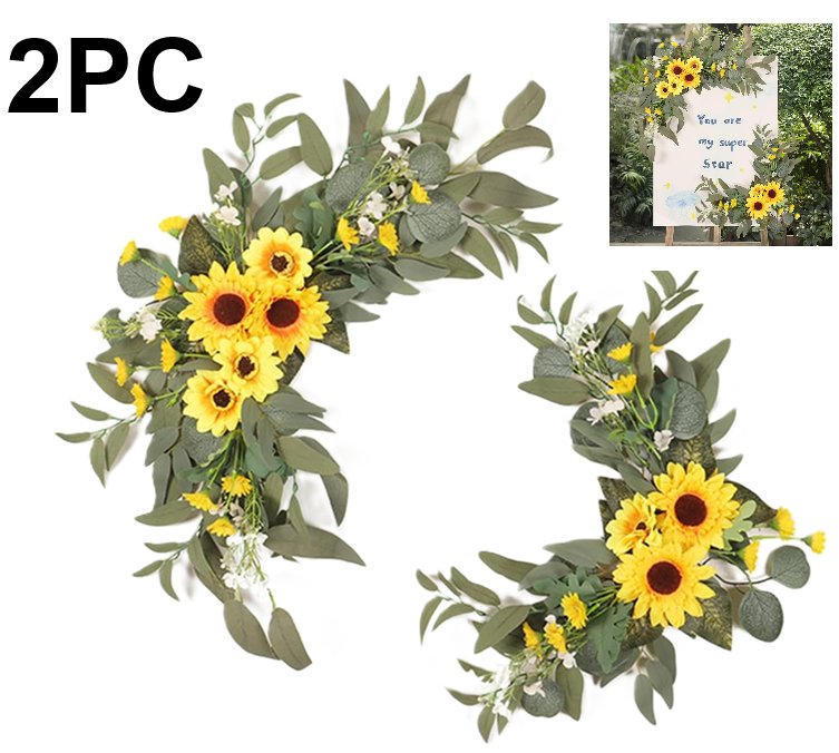2pcs Artificial Flowers Wedding Arch Flowers Floral Swags with Green Leaves Decoration Fake Flowers for Wedding Arch Chair Backdrop - Yellow