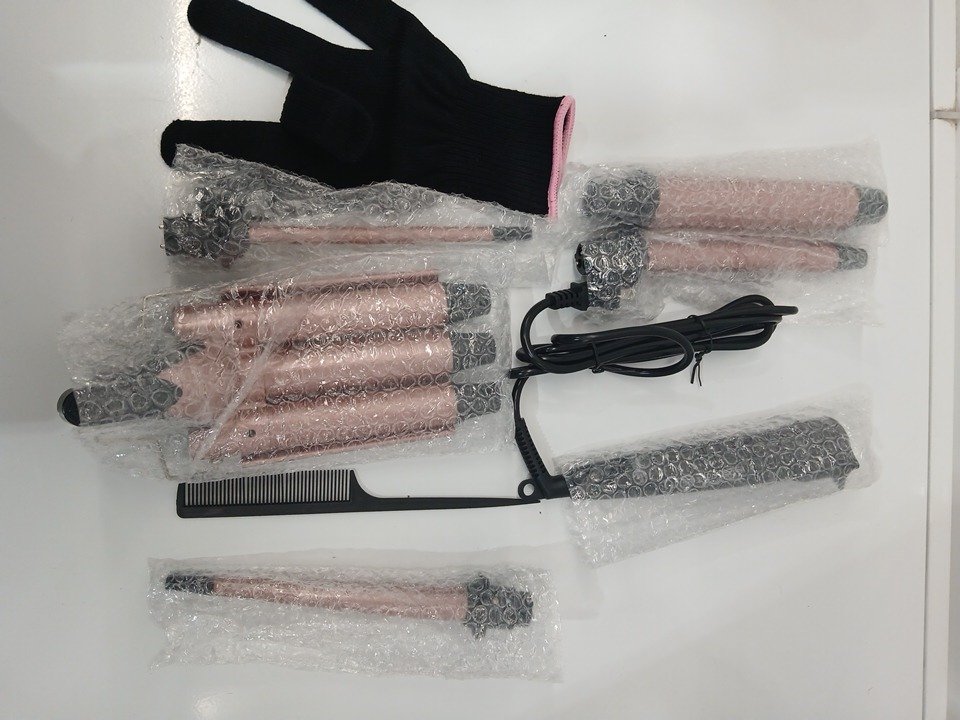 FBFL 5-IN-1 CURLING WAND SET WITH INTERCHANGEABLE BARREL, HAIR CLIPS AND HEAT PROTECTIVE GLOVE - PINK (MODEL: KS-C101)