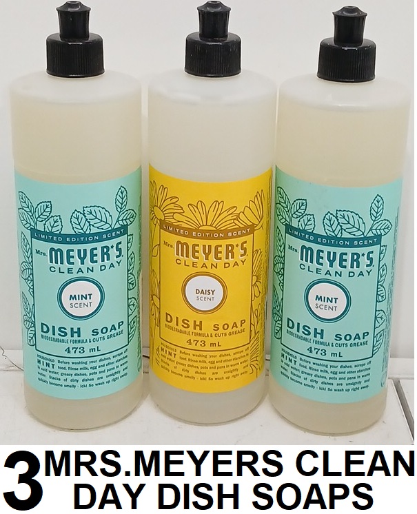 3 MRS.MEYERS CLEAN DAY DISH SOAPS - 473ML EACH - MINT SCENT/DAISY SCENT