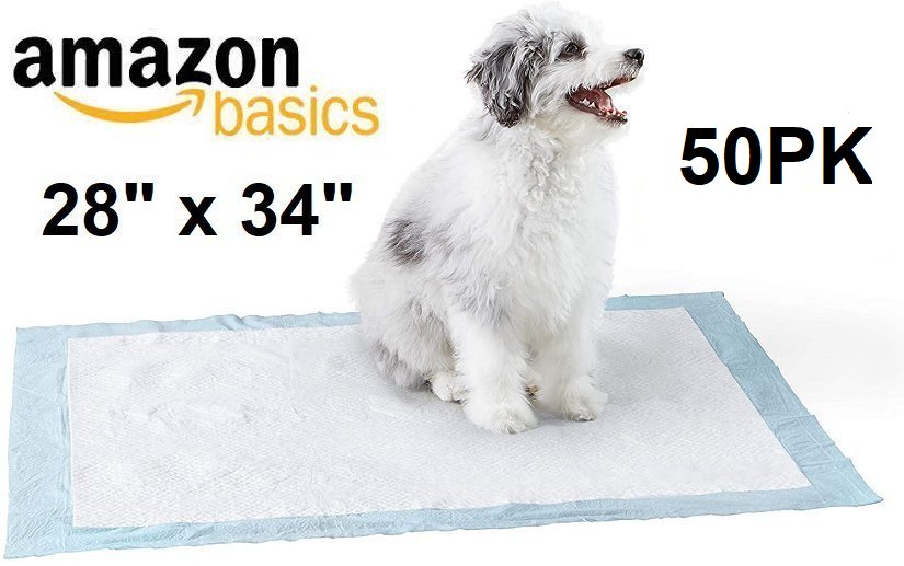 50PK AMAZONBASICS HEAVY DUTY PET DOG AND PUPPY TRAINING PEE PADS - XL (28" x 34") - WHITE/BLUE