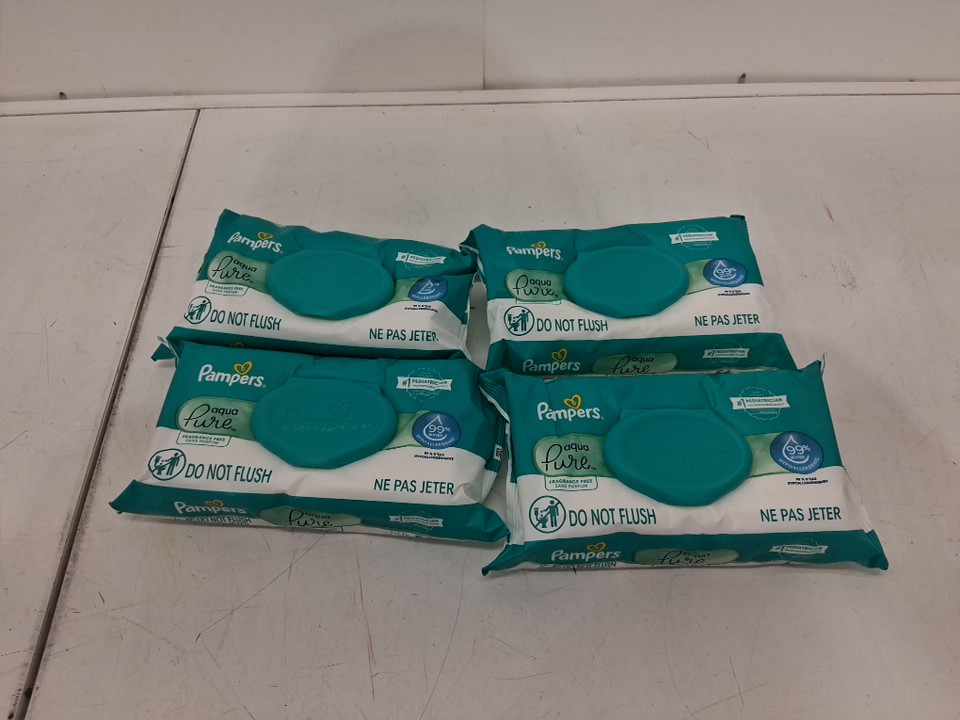 4pk Pampers Aqua Pure FRAGRANCE FREE BABY WIPES - 56 per pack (224 total)