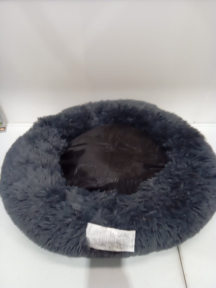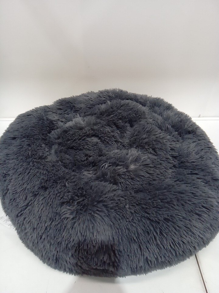 PLUSH CALMING FAUX FUR SHAG DONUT CUDDLER PET DOG/CAT BED - 24" - CHARCOAL GREY