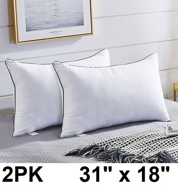 2pk large microfiber bed pillows - 31" x 18" - white/brown