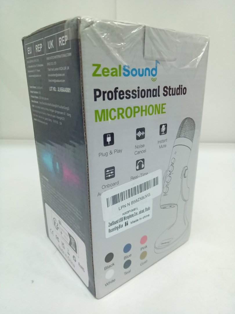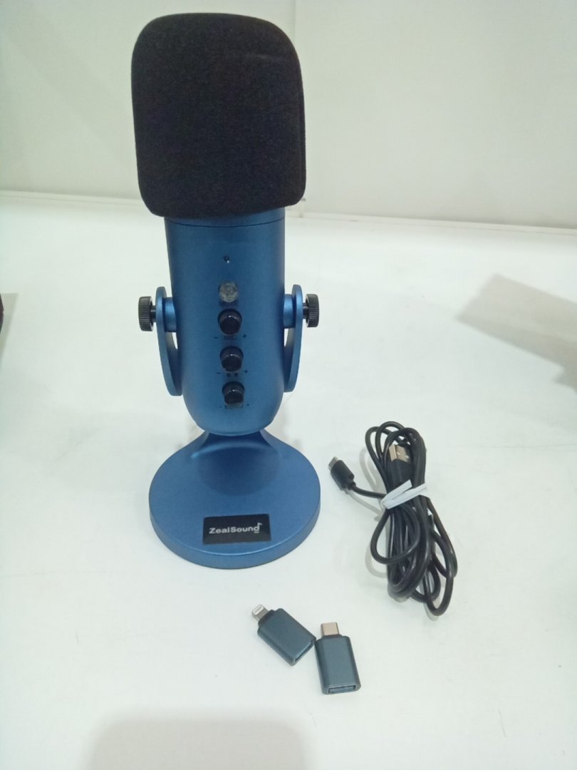 ZealSound USB Condenser Microphone with USB-C Adapter for Phones and 3.5mm Headphone Jack - Blue (Model: K66)