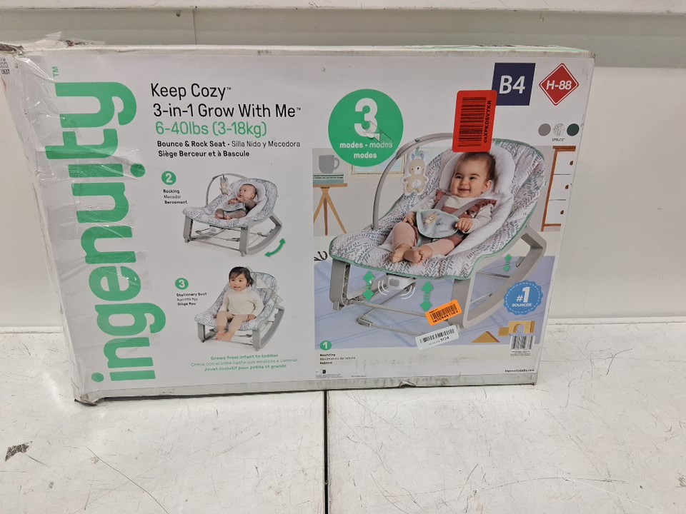 Ingenuity Keep Cozy 3-in-1 Grow with Me Vibrating Baby Bouncer Seat & Infant to Toddler Rocker - grey/white/green