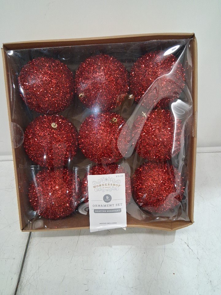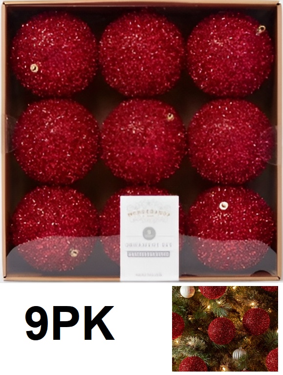 9PC WONDERSHOP Tinsel Ball Christmas Tree Ornament Set - Red