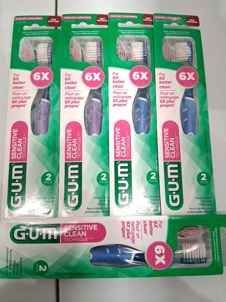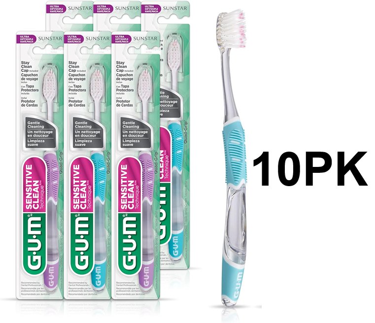 12PK G.U.M SENSITIVE CLEAN TOOTHBRUSH'S - SOFT BRISTLES - ASSORTED COLOURS