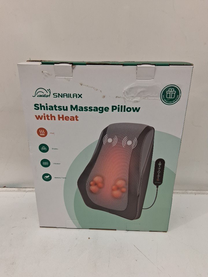 snailax shiatsu massage pillow with heat - Grey/black (MODEL: SL-128)