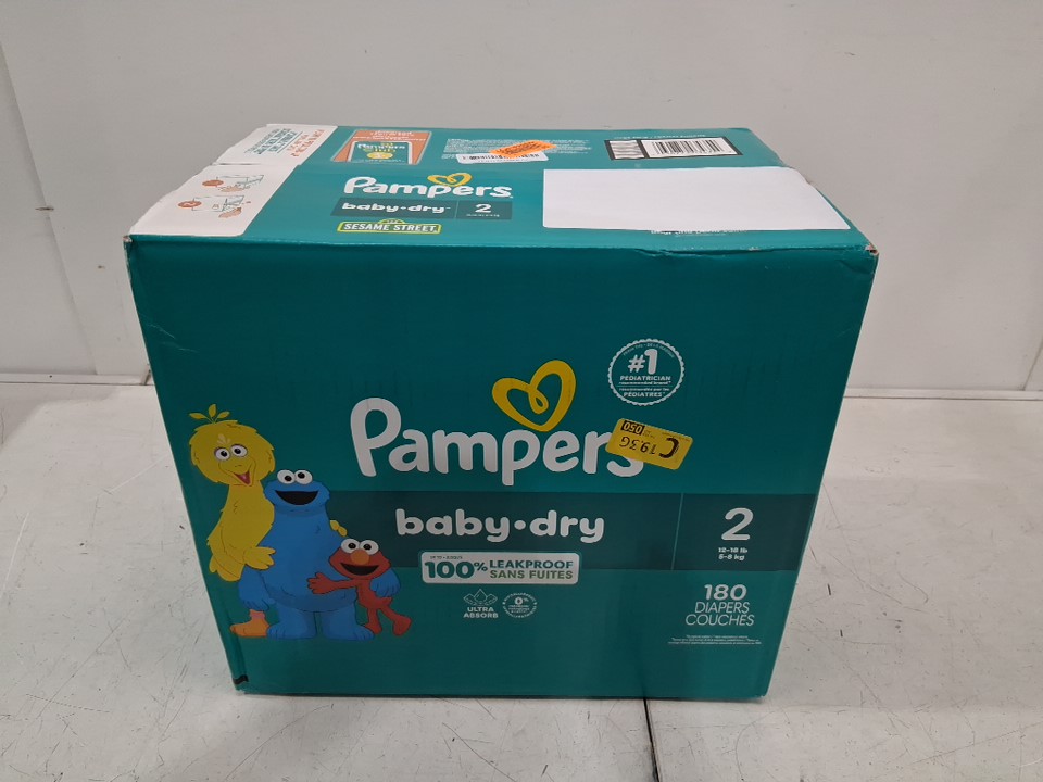 180PK PAMPERS SESAME STREET BABY-DRY leakproof DISPOSABLE DIAPERS - SIZE 2