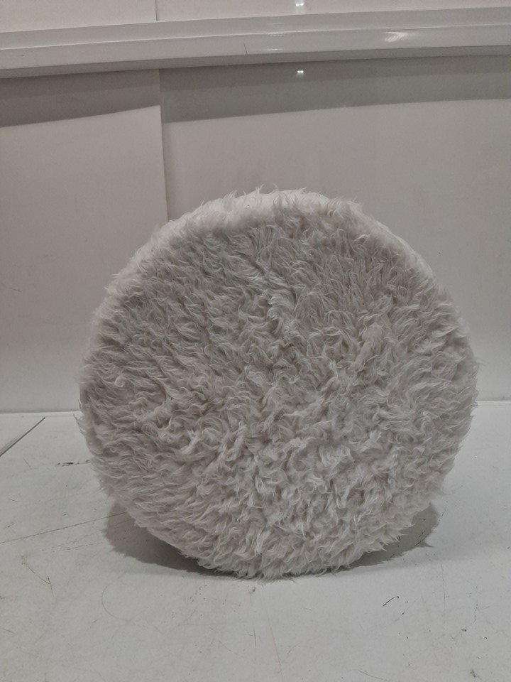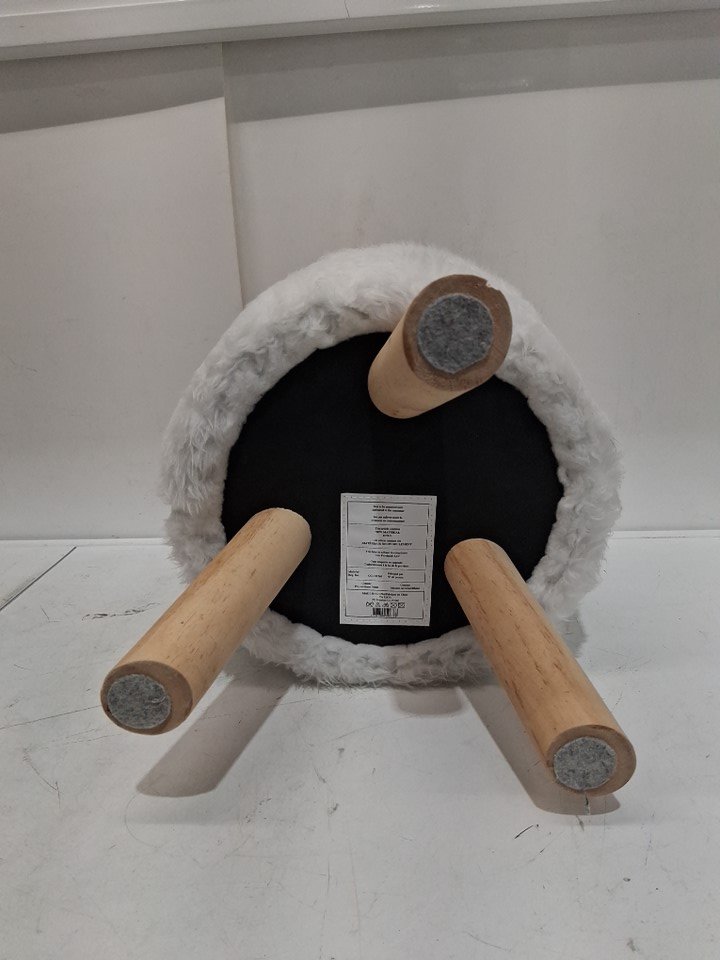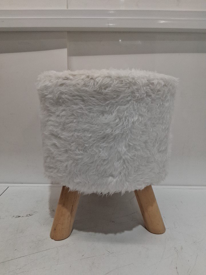 Faux Fur Fabric Round Footrest - 15.5" - white