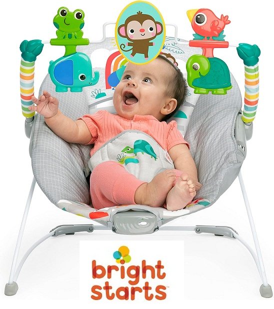 Bright Starts Playful Paradise Comfy Baby Bouncer Seat with Soothing Vibration and Toys - 0-6 months - multicolor