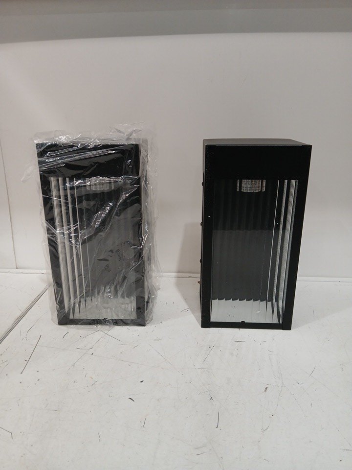 2PK Cerdeco Outdoor Wall Lights with Striped Tempered Glass - E26 Base - Black (Model: TLB08D)