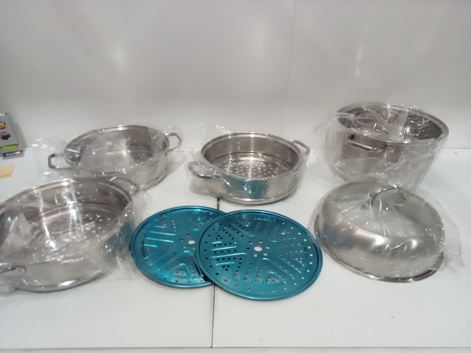7pc danston multi layer steamer/cooking pot with lid - 12" - stainless steel
