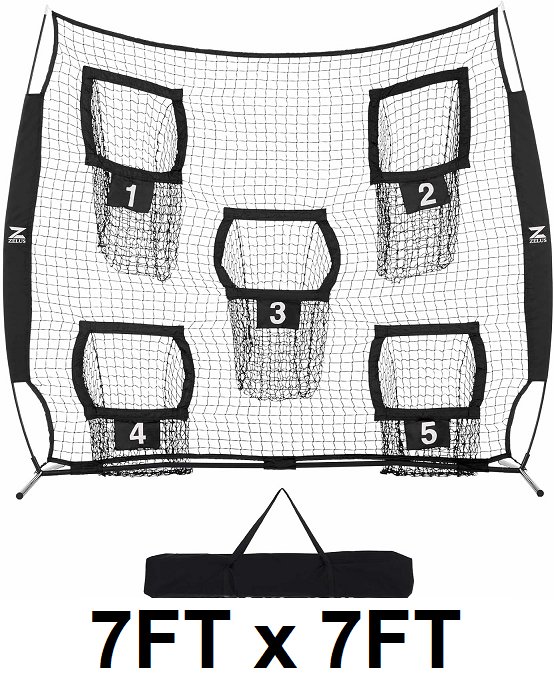 ZELUS Football Trainer Throwing Net WITH 5 HOLES - 7FT X 7FT - BLACK
