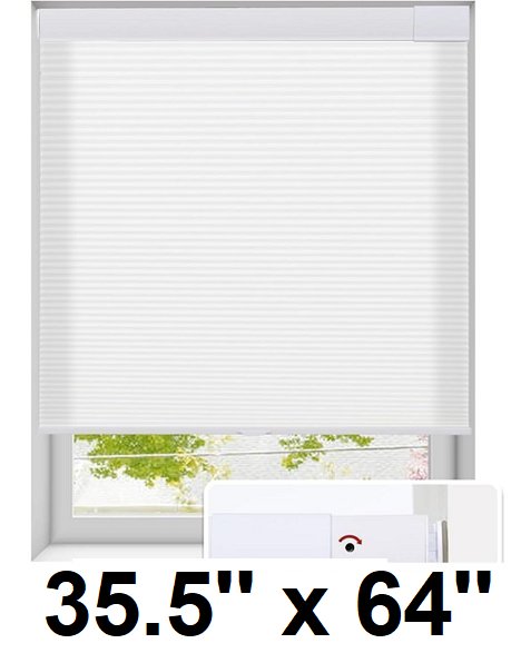 Tonature no drill no tools light filtering cellular shades honeycomb blinds - 35.5" x 64" - White