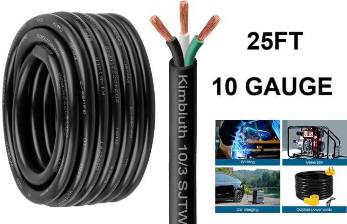 kimbluth 10-gauge 3 conductor wire heavy duty pure copper electrical wire 25FT - black