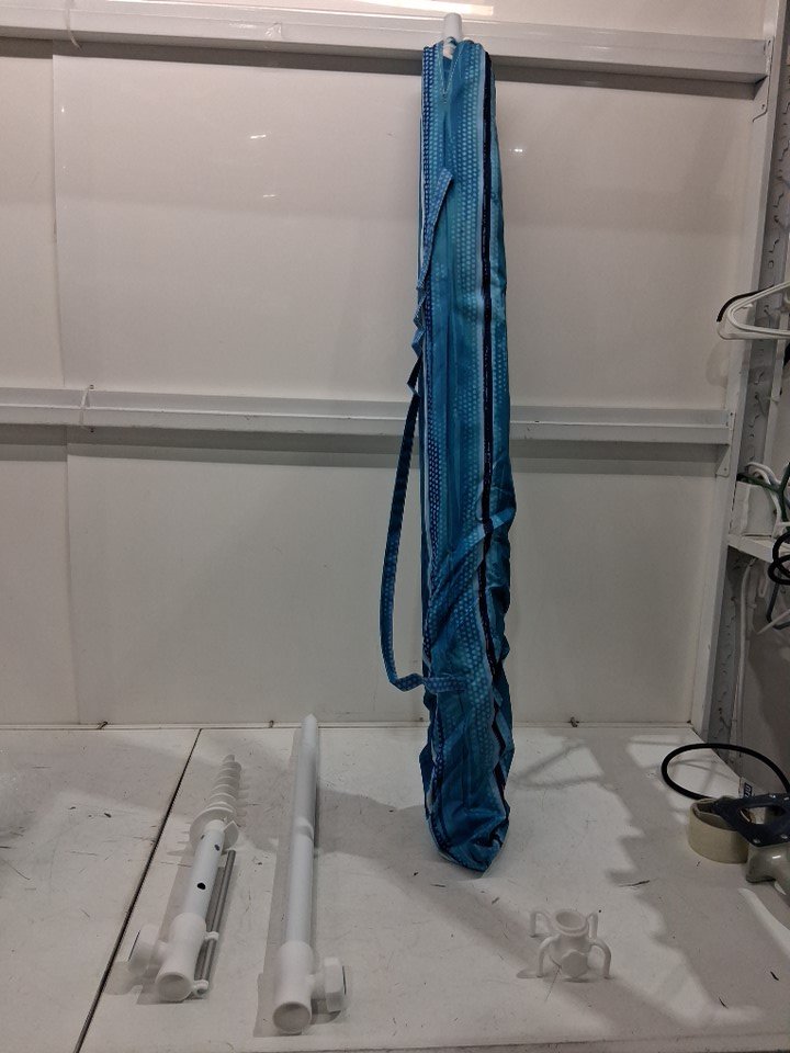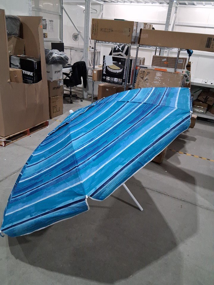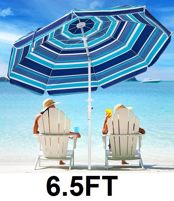 MEWAY BEACH UMBRELLA WITH SAND ANCHOR & TILT MECHANISM PORTABLE UV 50+ PROTECTION - 6.5FT - BLUE WHITE STRIPE