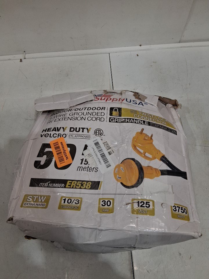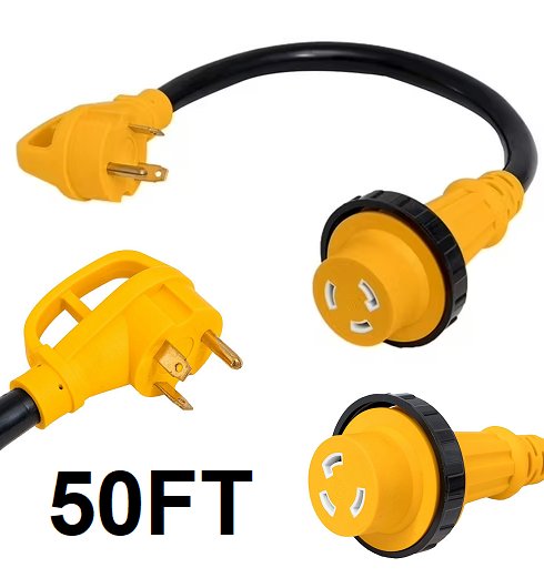 LifeSupply RV Extension Cord with Hook and Loop Strap - 50FT 30AMP - yellow/black (model: ER538)